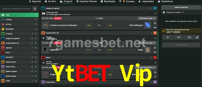O Ytbet Vip oferece uma grande seleção de opções de apostas em e-sports com probabilidades competitivas